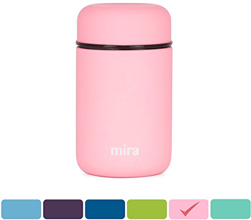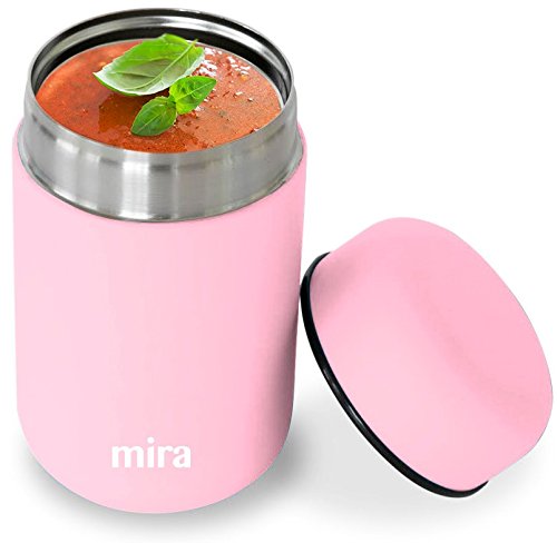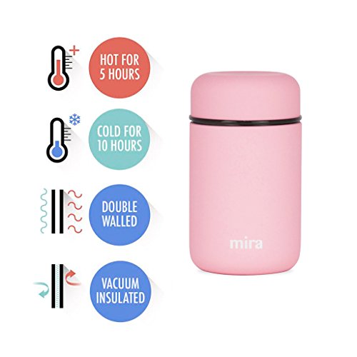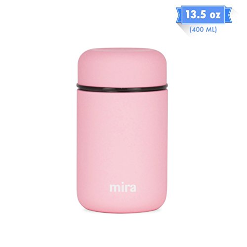 MIRA Lunch, Food Jar, Vacuum Insulated Lunch Thermos, 13.5 OzHigh-Quality: The MIRA durable lunch food jar is made of 18/8 food-grade stainless steel. The high-quality insulated lunch container keeps your healthy, homemade and delicious lunches and snacks hot for up to 5 hours or cold for up to 10 hours in this double wall vacuum jar. Eco-friendly, reusable, easy-to-fill wide mouth is also easy to clean.