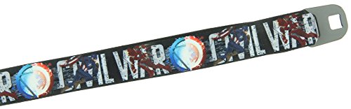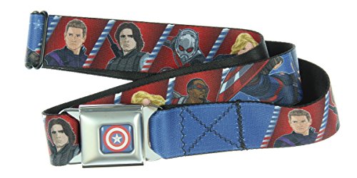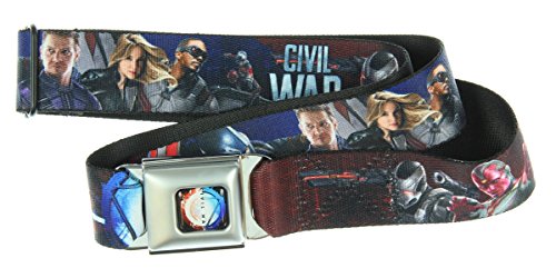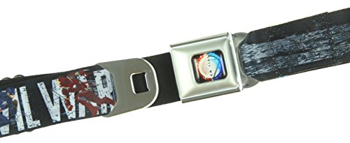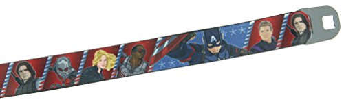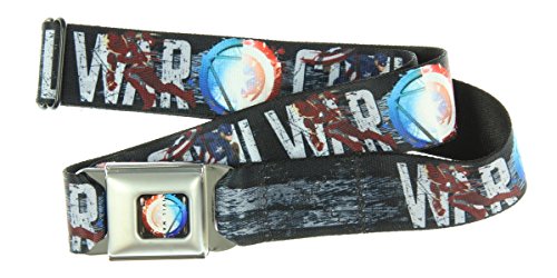 -. Binding : Apparel -. Brand : Buckle Down -. ClothingSize : One Size -. Department : mens -. Feature : Officially Licensed / Seat belt clasp closure / Adjustable (one size fits most) / Logo on buckle -. Label : Buckle Down -. Manufacturer : Buckle Down -. NumberOfItems : 1 -. ProductGroup : Apparel -. ProductTypeName : ACCESSORY -. Publisher : Buckle Down -. Size : One Size -. Studio : Buckle Down -. Title : Captain America Civil War Seatbelt Belt