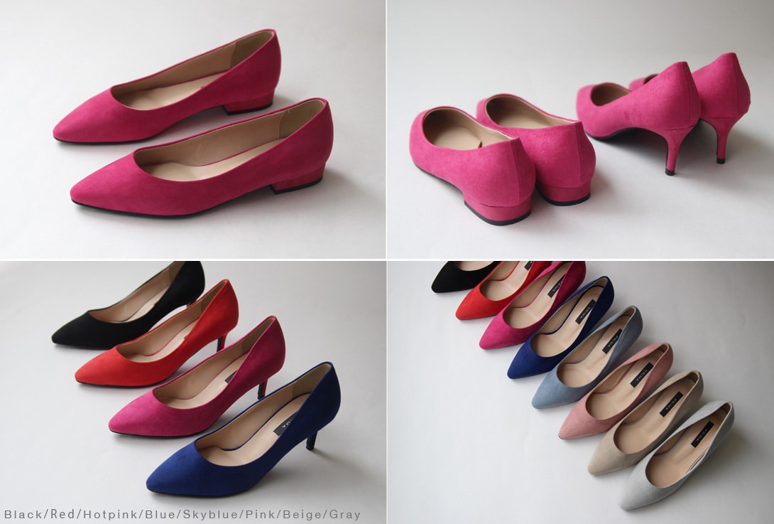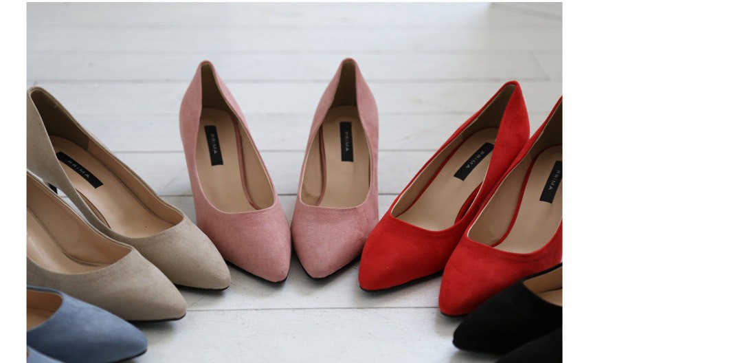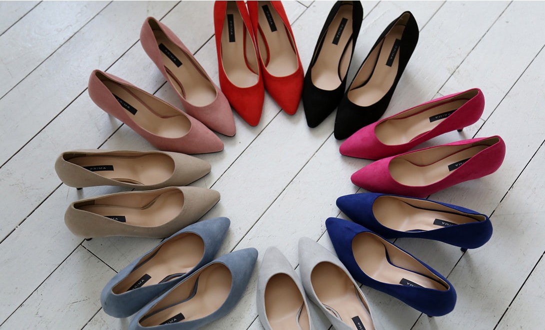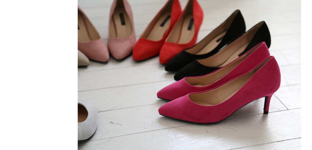 レディースファッションの婦人靴(レディースシューズ)の分野でパンプスは代表的なカテゴリー。スニーカー、ミュール、サンダルなど数かあるレディスファッションシューズの中でも最もスタンダードな種類で痛くないフラット(ぺたんこ)やピンヒール、ローヒール、オープントゥ、ストラップ、太ヒール、厚底、ポインテッドトゥ、バイカラー、リボン付きや、ひょう柄、メッシュなど種類や形状も多く存在し最も女性らしさを引き立て世界で多くの女性に愛されています。