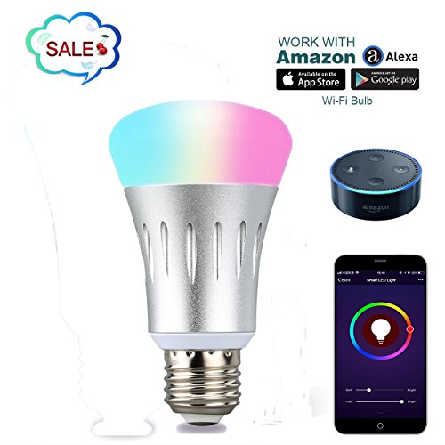 Wi-Fi Smart LED Light Bulb, Kalurab [Upgraded Version] Dimmable Multicolored LED Household Light Bulb, No Hub Required, Compatible with Alexa (Silver)