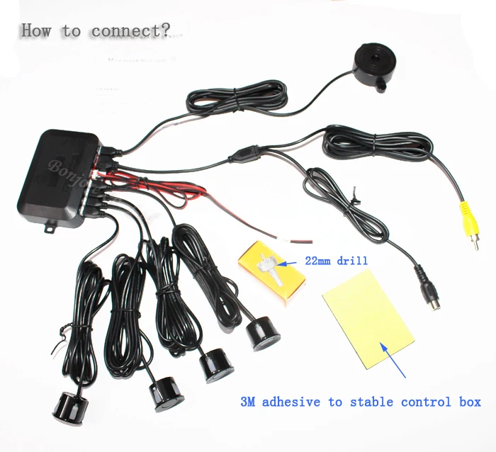 | Professional Car Parking Radar System for your car Easy to install and operate Double CPU 4 Waterproofing, Anti-frost, Anti-sand Sensor systems for enhanced coverage and detection Help to prevent dangerous and costly collisions Help to provide increased safety for passengers, pedestrians and family members -who happen to be around the moving vehicle Increase safety for pedestrians around the moving vehicle Detect small object and low walls as well When you close to the Obstacle, it will display the word:" Stop" Can be connected with any TFT-LCD screen Specifications: 1. Rate Voltage: 12V 2. Operating Voltage Range: 9~16V 3. Rate Current: 20~200mA 4. Detecting distance: 0 - 2.5m 5. Ultrasonic Frequency: 40KHz 6. Working Temperature: -30~80°C 7. Display Working Temperature: -30~60°C Features: 1. Size of Sound Alert Indicator: Φ4.1cm x 1.6cm 2. Length of cable of Sound Alert Indicator: 2.5m 3. Size of main control box: 8.9 x 6 x 2.2cm 4. Advanced chipset for enhanced coverage and detecting 5. Detect small objects and bars 6. Enable you to prevent dangerous and costly collisions 7. Provide increased safety for passengers, pedestrians and family members who happen to be around the moving vehicle. Package included
