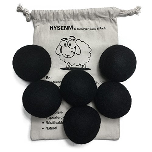 -. Title : HYSENM 6 Pack Natural Organic Hypoallergenic Reusable Wool Dryer Ball Fabric Softener with Drawstring Bag, black
