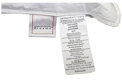 Down Dreams compartment pillow combines an outer layer of fluffy down for comfort with an inner chamber of small feathers that provide excellent resiliency and support. The shell is a luxury 233 thread count 100% cotton cambric barrier fabric that features double needle stitched, corded edges