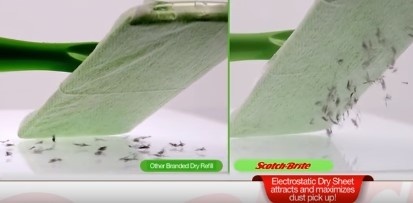 - Electrostatic sheet attracts and holds dust, dirt, hair, and other particles