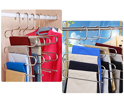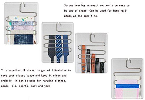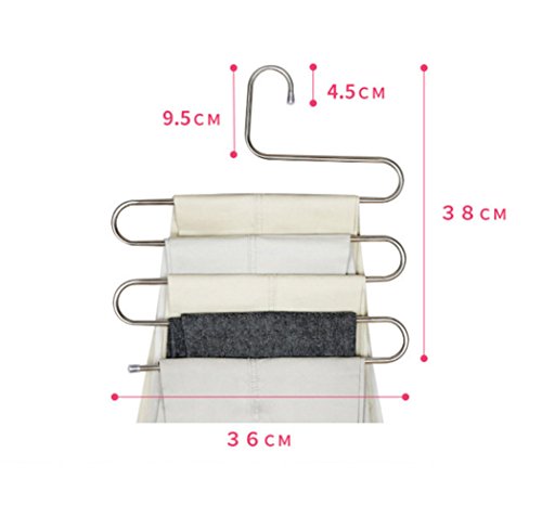 -. Feature : Product dimensions: 14.17''*14.96''/36*38cm(L*W),The unique open end design allows you to hang and remove your pants quickly and efficiently. / Save Your Closet Space-One hanger equal 5 hangers. Leaves more space in your closet, keep pants and clothes be organized on the neat and tidy. / Multi-Purpose- S-shape 5 Layers Hangers Storage Rack is ideal for hang your jeans, pants, trousers, ties, scarf, etc. that make it compact and organized. / High Quality- S-shape stainless steel pants racks made of durable stainless steel,this longlasting material that can be used for years, It will never rust and or deformed. / Protect Your ClothesThis item is a part of Hanger Collection featuring a simple yet unique design that is substantial enough to keep your garments in place while protecting them from unwanted creases or snags.