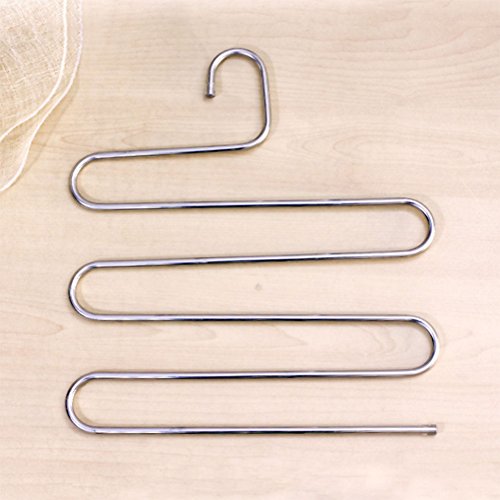 -. Title : S-Shape Stainless Steel Clothes Pants Hangers Racks Closet Storage for Jeans Trousers Space Saver Storage Pant Racks By Chuanyue