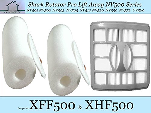 - FINALLY A PREMIUM QUALITY REPLACEMENT AT AN AFFORDABLE PRICE for your Shark Rotator Professional Lift-Away NV500 Series. 1 HEPA Filter & 2 Foam & Felt Filter Kits, Fits Shark Rotator Professional Lift-Away NV500, NV500CO, NV500W, NV501,NV502, NV503, NV505, NV510, NV520, NV550, NV552, UV560. Compare to Genuine Part # XHF500 & XFF500