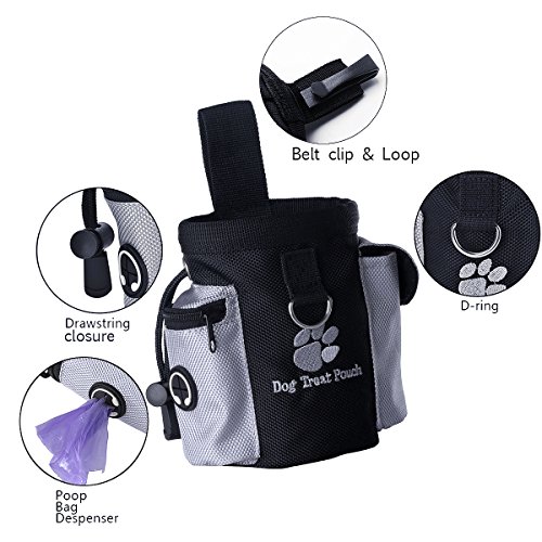 Features: Quickly access treats, toys and accessories right when you need them Built-in poop bag dispenser for easily pulling out waste bags. The inner pouch can be pulled out for easy cleaning and emptying. Package Inlcudes: 1 x Powkoo Pet dog treat training pouch Other accessories not included 0