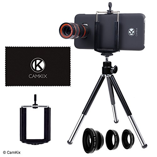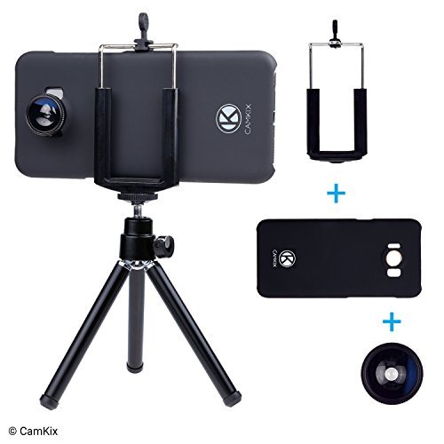 CamKix Lens Kit for Samsung Galaxy S8 and S8 Plus - 8x Telephoto Lens, Fisheye Lens, Macro Lens, Wide Angle Lens, Tripod, Phone Holder, Hard Case (2x), Velvet Bag and Cleaning Cloth