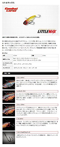 combat 리틀 맥스 1/4온스■전장:4.5cm■자중:1/4온스■권장 로드:라이트~미디엄 라이트 베이트 로드■권장 라인:Line:프로 러 카본8~12lb.or 나일론8~12lb.■링(스냅)크기:【라인아이】 루어 스냅#1