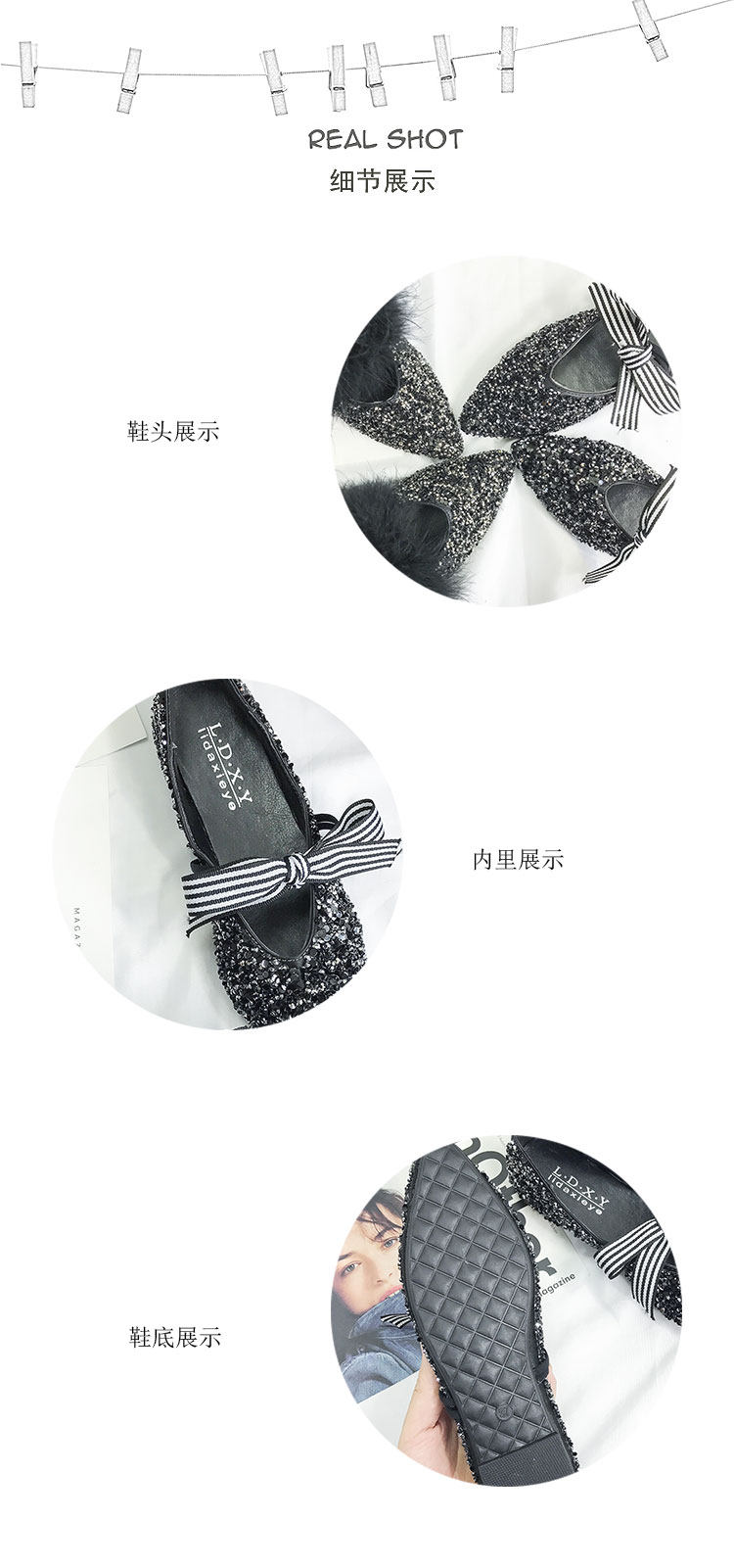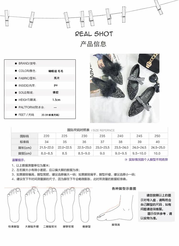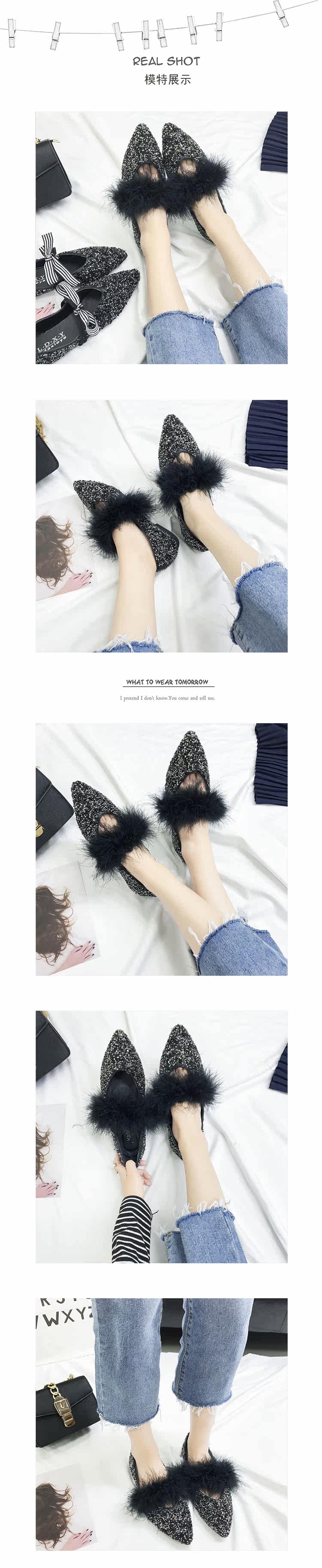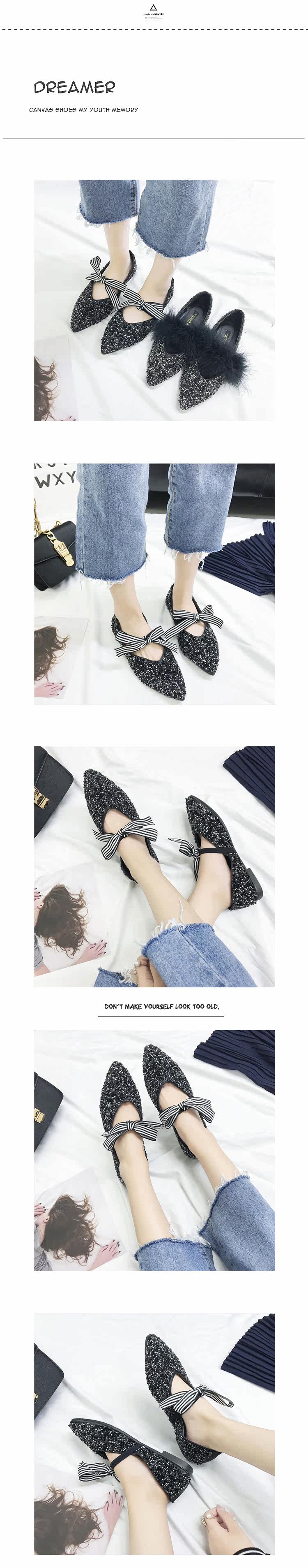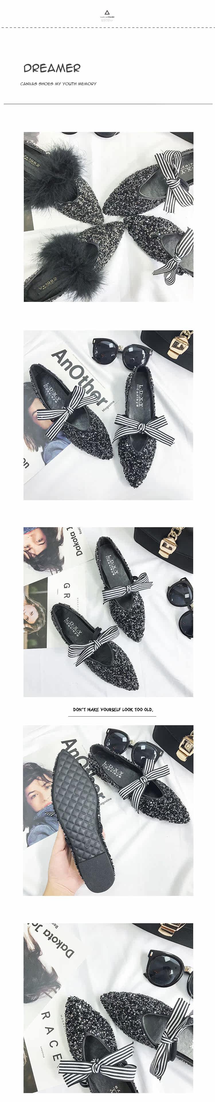 秋季新款女鞋韩版纯色尖头平底单鞋蝴蝶结百搭亮片软底浅口