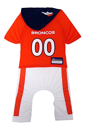 -. Binding : Misc. -. Brand : Pets First -. Color : Orange -. EAN : 0849790054059 -. Feature : Officially NFL Licensed! / NFL woven jock tag for personalization. - Team name and logos are printed to make this an outstanding pet outfit / Made with cotton poly for maximum comfort with a Velcro closure for easy fit / Machine wash cold. Do not bleach. Line dry. Do not iron print / For sizing specifications, please refer to the Size Chart below the item's picture, by measuring your pet from the nape of the neck to the base of the tail -. Label : Pets First -. Manufacturer : Pets First -. Model : DEN-4050-SM -. MPN : DEN-4050-SM -. PackageQuantity : 1 -. PartNumber : DEN-4050-SM -. ProductGroup : Pet Products -. ProductTypeName : PET_SUPPLIES -. Publisher : Pets First -. Size : Small -. Studio : Pets First -. Title : NFL Denver Broncos Pet Onesie, Small -. UPC : 849790054059