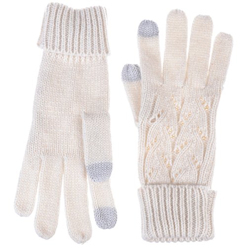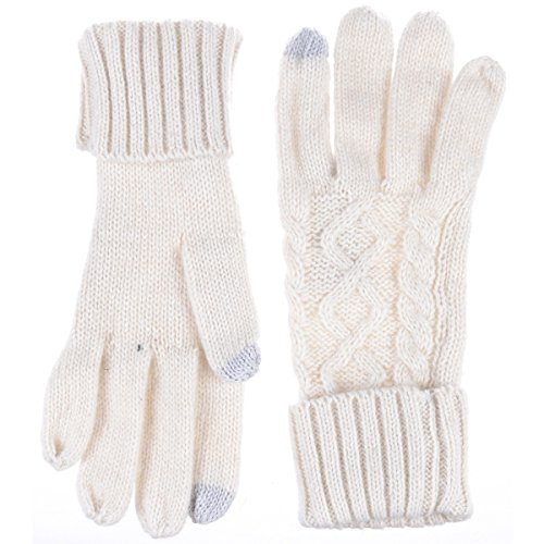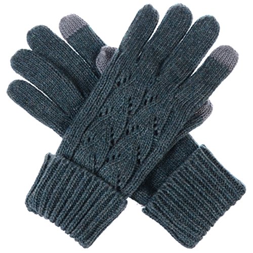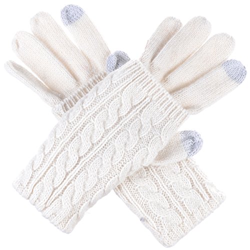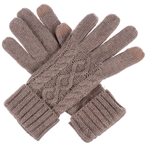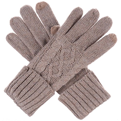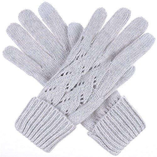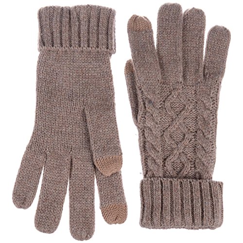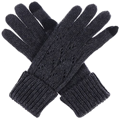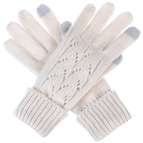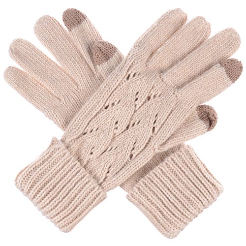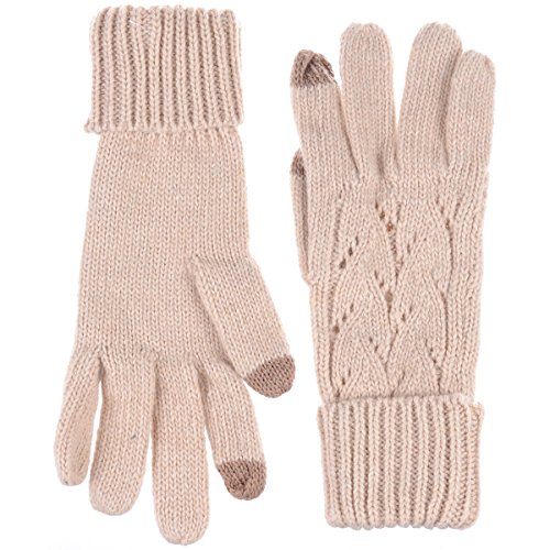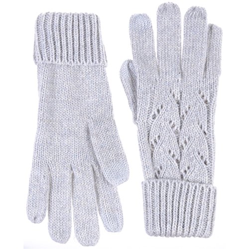 | BYOS Women Winter Wool Blend Leafy Texting Knit Gloves W/ Two Fingertips Conductive Tech for Al... |