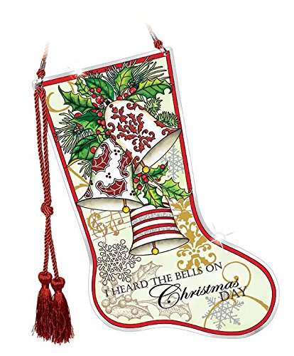 Amia 42155 Hand-Painted Glass Christmas Stocking Window Decor Panel, Beveled-Edged Glass, 16-1/2" High