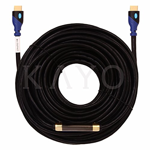 KAYO High Speed HDMI Cable 75 Feet with BUILT-IN SIGNAL BOOSTER & CABLE TIE INCLUDED -VERSION 1.4 with Ethernet, Supports 3D & Audio Return Channel, Gold Plated Connectors, FULL HD (Latest VERSION) with SOFT PVC Jacket/Sleeve.