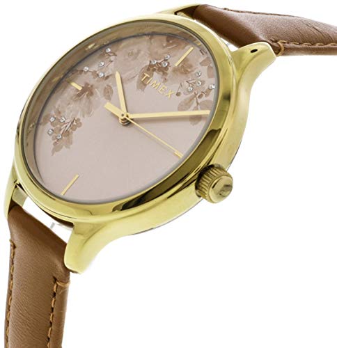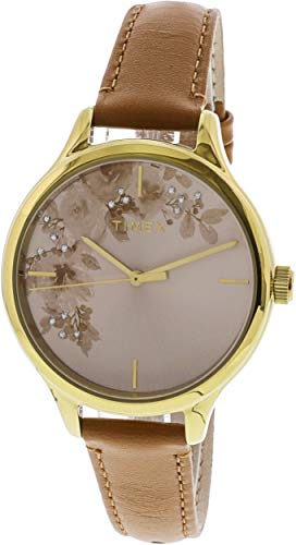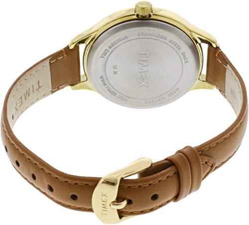 Brand, Seller, or Collection Name:Timex Model number:TW2R66900 Part Number:TW2R66900 Item Shape:Round Dial window material type:Mineral Display Type:Analog Clasp:Buckle Case material:Brass Case diameter:36 millimeters Case Thickness:8 millimeters Band Material:Calfskin Band length:Women's Standard Band width:14 millimeters Band Color:Brown Dial color:Gold Movement:Japanese quartz Water resistant depth:30 Meters