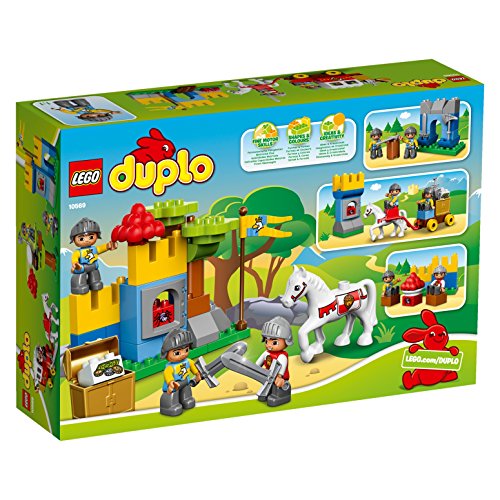 -. Feature : Enthält 3 L.E.G.O DUPLO Ritterfiguren / Mit Pferdewagen, Burgturm und Apfelbaum / Der Burgturm verfügt über ein Fenster zum Öffnen / Als Zubehör sind Katapult, Flagge, 2 Schwerter, Axt, Äpfel und ein Schatz-Element enthalten / Die mit einer Spinne und Münzen bedruckten Steine regen die Fantasie an