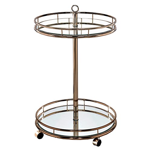 Studio : Furniture of America Publisher : Furniture of America Binding : Kitchen Product Description The Dominga Serving Cart features a lustrous Champagne finish and elegant mirror shelves. Its spacious open shelves provide ample room to organize all your essentials while sturdy smooth guard rails keep items securely stored. Move about on its convenient caster wheels and easily accommodate guests in any home space. Simplify your home with the chic and charming Dominga Serving Cart by ioHOMES. 0