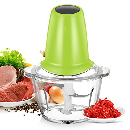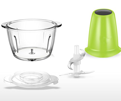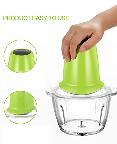 The kitchen helper you'll use for every meal Mix up a quick pancake batter. Chop onions without the tears. Puree a creamy salad dressing. Slice cucumbers evenly for a perfect salad. Chill, then shred or grate your favorite cheese for a variety of dishes. Many processing options Use the Electric Food Chopper for chopping nuts, meat, garlic, onions, peppers, celery, herbs, bread (for crumbs), and crackers. Also, use it to mince/puree vegetables and fruits, to mix salad dressings, to puree soups or sauces, and to grate cheese. Use the slicing disc (slicing side facing UP) to slice cucumbers, apples, mushrooms, carrots, potatoes, cabbage, tomatoes, pepperoni, peppers, radishes, and firm cheeses. Use the shredding disc (shredding side facing UP) to shred cabbage, potatoes, carrots, and cheese. Easy to use The bowl and lid lock into place with a simple twist. Choose the blade or disc depending on what you are making. It's very simple to operate; just rotate the knob conveniently located on top of the base and the processor will run continuously. For instant on/off control, use the Pulse setting.Feature