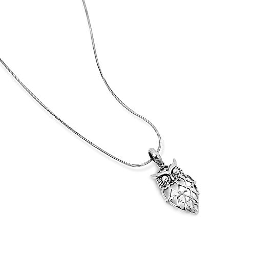 This beautiful Heart Owl necklace would be a wonderful addition to any wardrobe. The included black velvet pouch also makes it the perfect gift for someone special. Made from high quality 925 sterling silver, stamped 925. The pendant comes with the sterling silver snake chain 18''. The owl spirit animal is emblematic of a deep connection with wisdom and intuitive knowledge. If you have the owl as totem or power animal, you're likely to have the ability to see what's usually hidden to most. When the spirit of this animal guides you, you can see the true reality, beyond illusion and deceit. The owl also offers for those who have it a personal totem the inspiration and guidance necessary to deeply explore the unknown and the magic of life.