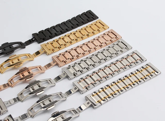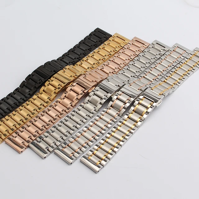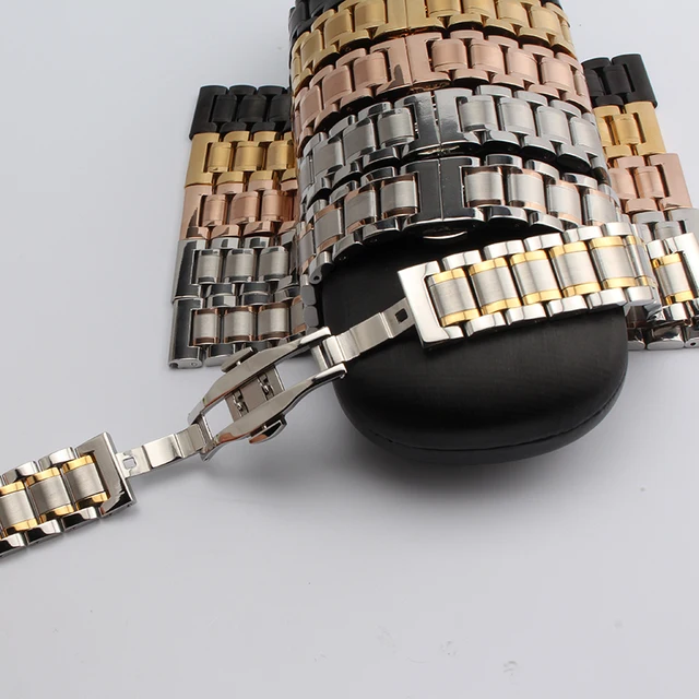 상품 내용 14mm 16mm 18mm 19mm 20mm 21mm 블랙 실버 골드 장미 금 스테인레스 스틸 스트랩 팔찌 시계 밴드 고체 링크 패션 버클