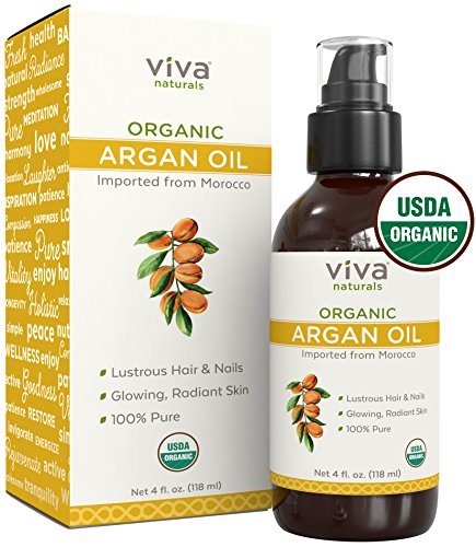 Viva Naturals Organic Moroccan Argan Oil, 4 oz - 100% Pure and USDA Certified for Face, Hair, Skin and Nails