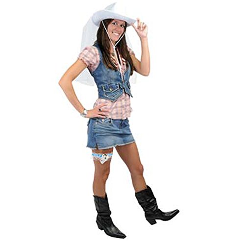 -. Brand : The Beistle Co. -. Color : White, Blue -. Department : unisex-adult -. Feature : Lacy Western Wedding Prom Garter / Complete w/ Mini Faux Six-Shooter! / Stretchy Elastic Fits Most Most Women / Embellished w/ Blue Satin Fabric & White Lace / Also Great For Costumes! -. PackageQuantity : 1 -. ProductGroup : Apparel -. ProductTypeName : ADULT_COSTUME -. Size : One Size -. Title : Western Bride Cowgirl Lacey Six Shooter Garter -. UPC : 736649589780