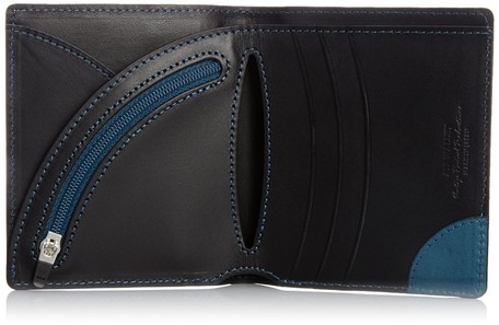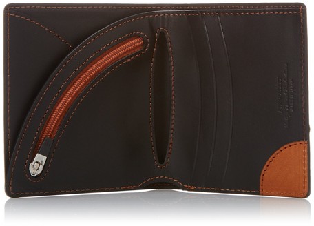 「小銭入れ」のファスナーは、弧を描いたオリジナル、通常の直線タイプのファスナーに比べて、省スペースでも十分な収納力を得られます。さらに、紙幣収納部に隠れた「カード入れ」は、薄いながらも複数のカードを収納可能であり、レザーが折り返してあるのでカードが倒れてくる心配もございません。