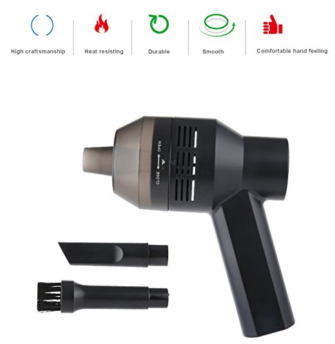 -. Feature : ♥ Multiple usage handheld vacumm: can used to clear dust for keyboards, laptops, cars, TVs, air conditioners, handbags, cosmetic bags, pet beds/houses, desktop, household furniture, etc. / ♥ 3 nozzles for a variety of applications, 2 nozzles removable. Brush nozzle for surface dust, flat nozzle for hidden dust, tube nozzle for granular stuffs. / ♥ High quality material: surface material was made from ABS, it's smooth, comfortable, high craftsmanship, and durable. / ♥ High volume lithium battery (2000mAh), long lasting up to 50 minutes (slow speed) for each use, quick charging up to 4 to 5 hours, rechargable up to 1000+ times, use up to 5 years. / ♥ Two air outlets on each side for rapid heat-dispersing makes it durable enough.