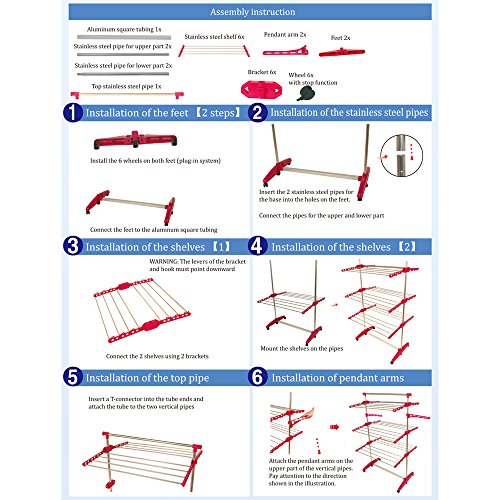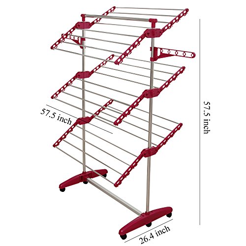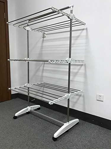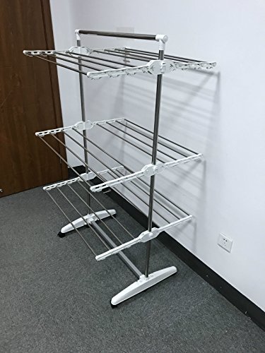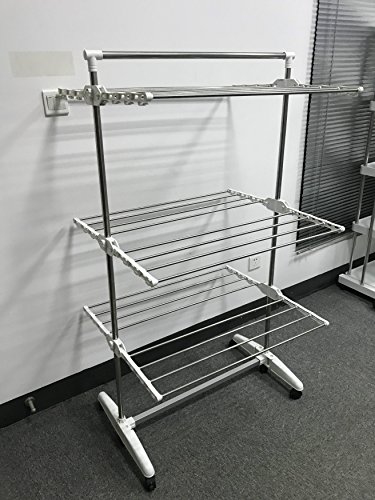 The drying rack has 6 retractable trays and 2 additional wings. It can be fold down and extend out to conserve space. You can either hang more clothes on or save some space which is great for a small apartment.