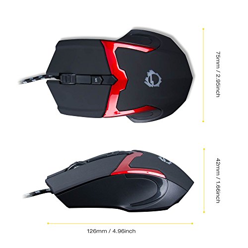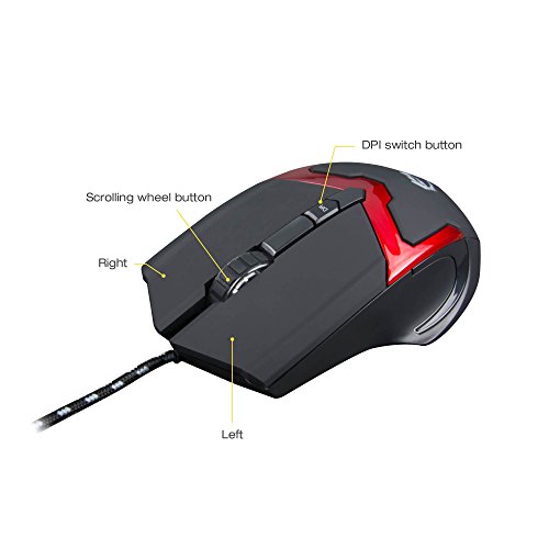 -. Feature : Wired USB mouse with high resolution optical sensor / Ergonomic design improves palm and wrist support. 4-button with scrolling wheel great for web, data browsing or gaming control / 2-level adjustable optical sensor supports 800 DPI or 1600 DPI resolution and provides smooth and precise movement / Woven braided USB cable enhances durability and shielding, integrated ferrite core minimizes signal interference and crosstalk / Built-in 7-color backlit LED with automatic alternating color display provides smooth ambient lighting experience