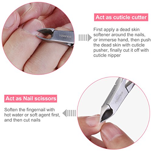 Tip for using the cuticle nipper: Press the nipper's cutters down over the frayed cuticle and close tightly. Then OPEN the jaws before lifting away. This will ensure that you don't snag or tear the cuticle if it isn't completely cut.