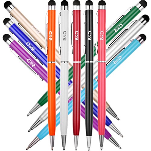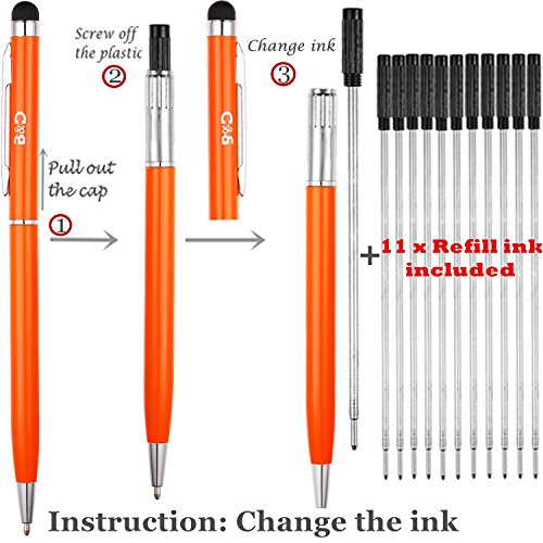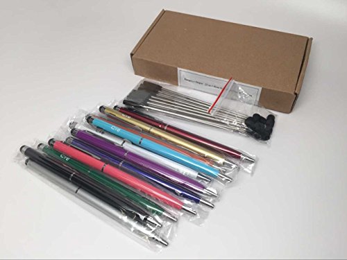 - Feature : 2-in-1 Design - One side is rubber tip perfect for drawing apps, scrolling and surfing the web , the other side features an twist ink Pen, perfect for taking paper notes. / 100% Compatible with all capacities touch screen devices (Compatible with iphones iPad , iPod ,Kindle Fire, Kindle Touch, Motorola Xoom Tablet, Galaxy, and Blackberry Playbook Virtuoso Touch) ;Conveniently designed in pen form, perfect for carrying around / Changeable tip and Refillable ink Feature - Extends Lifetime of this stylus pens ; replacing can be done without a second tool / Package included 11 Pcs Stylus Pens ; Extra 11 Pcs replacement rubber tips ; Extra 11 Packs refill black ink / Color: Black, Silver, Gold, White, Dark Blue, Light Blue, Red, Hot Pink, Purple, Green,Orange