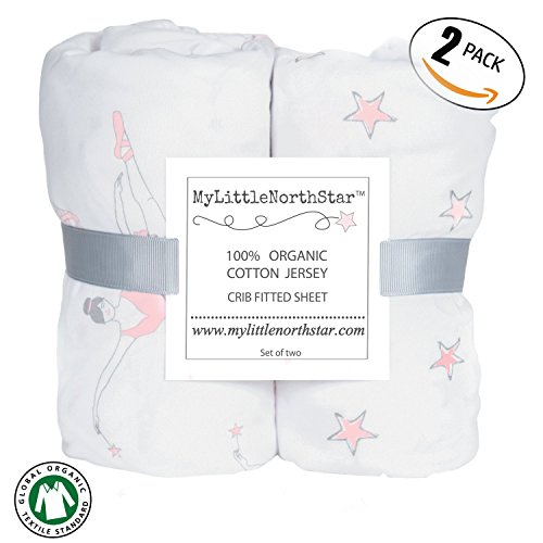 -. Title : 100% Organic Jersey Cotton Fitted Crib Sheets Girl - 2 pack - GOTS certified - fits Standard Crib and Toddler Mattresses 52x28x9'' - best baby shower gift - by My Little North Star