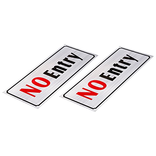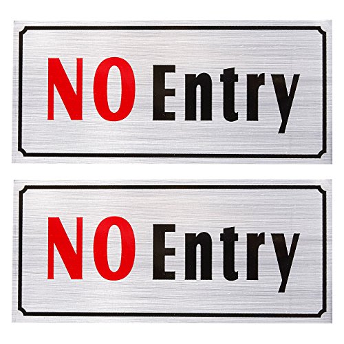 2-Pack of No Entry Signs - No Trespass Signs, Private Property Signs, Self Adhesive, Aluminum Privacy Signs for Office, Business and Home Use, Silver - 7.8 x 3.6 Inches