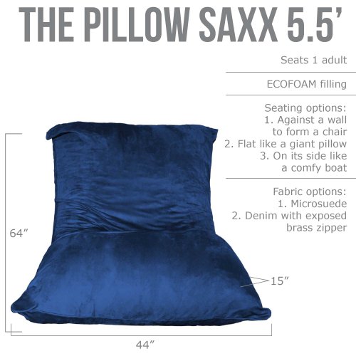 Studio : StudioOneUp Publisher : StudioOneUp Binding : Kitchen Product Description Our most popular bag, the Pillow Saxx is ideal for those looking for variety in their lounging options. Like a gigantic pillow, it molds around you to suit your mood. It works as a crash pad when flat on the floor, with plenty of room to lie out, and up against the wall it provides the perfect position for reading or playing your favorite games. Even better, turn it on its side for spreading out and relaxing in a hammock of coziness. Plus it is easy to store under a bed or table when not in use - not that you will ever want to leave this platform of peacefulness. We stuff our Saxx with ECOFOAM and cover it in the finest, most breathable materials. You will also never have to worry about crumbs or dirt; just throw the cover in the wash to make it good as new. Care Instructions for Microsuede Cover: machine wash with cold water and tumble dry on low heat. Fluff as needed. 0