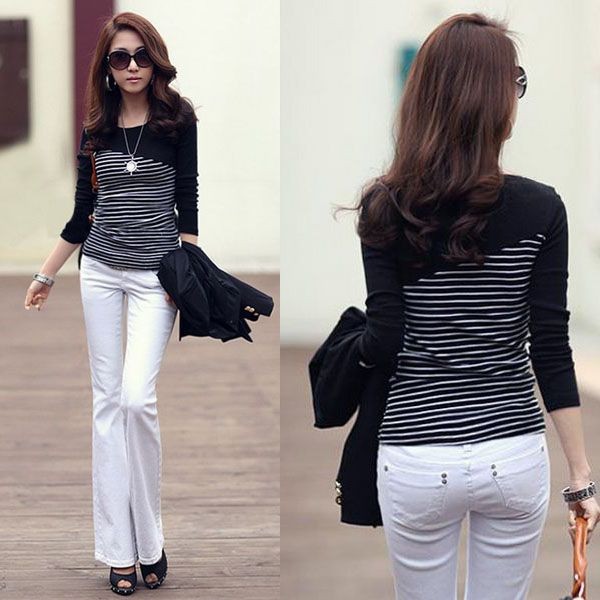 | 商品名 | 長袖 ボーダー柄カットソーTシャツ バイカラー フィット | ||