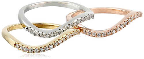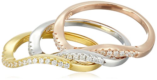 -. Title : Set of 3 Wave with Rose and Yellow Gold Plated, Sterling Silver Cubic Zirconia Stackable Ring