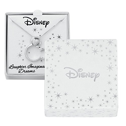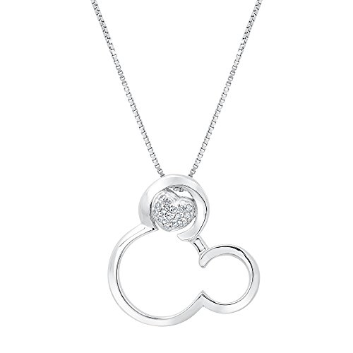 Celebrate everyone's favorite Disney character with this sterling silver Mickey Mouse pendant. Inside one of Mickey's ears is a diamond adorned heart for added shine. Diamonds are 1/20ctw, I in color, and I2 in clarity. Mickey is 20mm in length and 20mm in width. An 18inch sterling silver box chain is included with your purchase.
