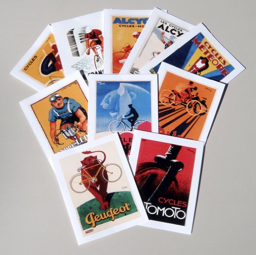 -. Feature : Pack of 10 cards with envelopes / 1 each of 10 different Art Deco classic bicycle poster images / Blank inside for your personal message / P.R.Inted on high quality card stock / Dimensions 4.25" x 5.5"