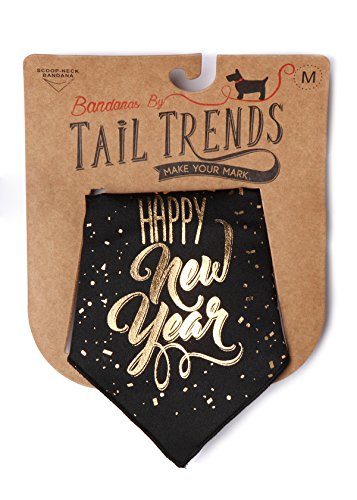 -. Binding : Misc. -. Brand : Tail Trends -. Feature : Ring in the New Year with this Designer Handmade Dog Bandana on 100% cotton fabric / Stitched edge for longer wear and is machine washable / Great affordable Gift for your furry friend to dress up without the fuss of a full body garment / Medium Size fits 8"-15" neck line, dimensions are 21 x 6 inches (L x W) / Large Size fits 16"-24" neck line, dimensions are 25 x 9 inches (L x W) -. Label : Doggone Cute Inc. -. Manufacturer : Doggone Cute Inc. -. PackageQuantity : 1 -. ProductGroup : Pet Products -. ProductTypeName : PET_SUPPLIES -. Publisher : Doggone Cute Inc. -. Studio : Doggone Cute Inc. -. Title : Tail Trends Happy New Year Dog Bandana for Medium to Large Sized Dogs - 100% Cotton