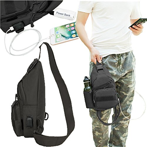 -. Feature : Material: sling backpack is made of sturdy and durable polyester,waterproof. / Size: 7*3.2*12.2 inch(L*W*H).With a long crossbody adjustable strap,smooth zipper. / Chest bag for men external USB Interface: You can easily and conveniently charge your phone, tablet and other devices without opening up the backpack. / Designed for comfort: can be used both as chest pack and shoulder bag, messenger bag, travel bag; Satchel strap is adjustable and can be left or right shoulder, Fit both regular and plus-size person / Structure: three zippered main pockets and a mesh pocket on side. Roomy compartment to organize your cellphone, tablet, wallet, keys, ID card, credit card, small snacks.
