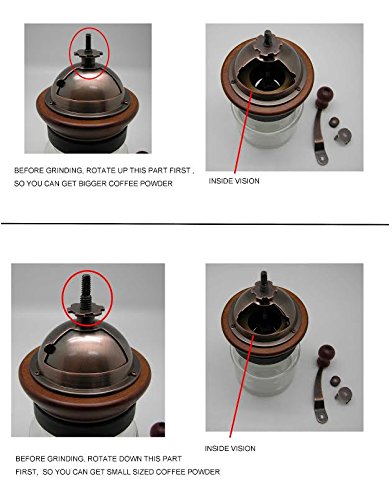 -. Feature : This durable, stylish manual coffee grinder allows you to extract maximum flavor for the best tasting cup of coffee you've ever experienced. Start your morning off right with the Clever Chef Matte Copper Manual Coffee/Spice Grinder. / Grinding your coffee beans fresh each morning couldn't be easier. Just scoop beans into the hopper, slide the lid closed, and turn the handle to create consistently sized coffee grounds. / Features a shatter-resistant glass storage container, durable ceramic grinding burrs, and comfortable handle design. Use your grinder to add fresh spice flavor to your favorite dishes. Perfect for peppercorns, allspice berries, cumin seeds, coriander seeds, mustard seeds, and many more. / Measures 9 X 6 X 3 inches and has a 2.5 (two and one half) cup/20 ounce/0.6 liter capacity. / Backed by our 100% Satisfaction Guarantee (details below in description)