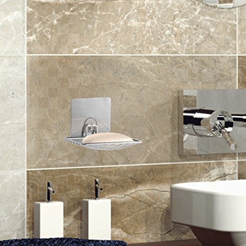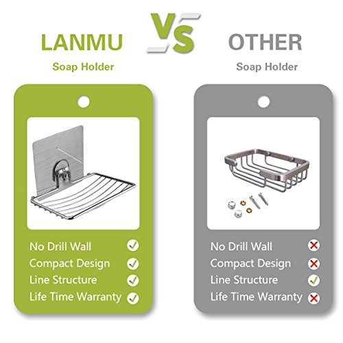 - LANMU Adhesive Soap Holder made of excellent stainless steel,solid main body assurance durable used and will not rust.Simple fashion modeling with hole design make sure the water can be drained and highlighting the quality of life,let your bathroom or kitchen more tasteful.
