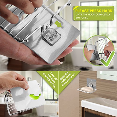 Adhesive Soap Holder,LANMU Soap Holder,Stainless Steel Soap Dish for Sink,Shower,Bathroom & Kitchen,(Stronger than Soap Holder Suction Cup)