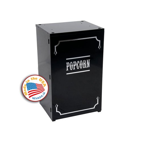 -. Feature : Free Lift Gate Delivery on large units Included to get unit off the truck only. / Attract your customers to your concession stand or snack area with the Paragon 3080920 premium black and chrome stand! / This popcorn stand is specially designed to work with Paragon 4 oz. / The whole stand is made of steel for long-lasting durability, and its powder-coat paint finish elegantly displays the word "POPCORN" and resists chipping for a sleek, flawless appearance. / A storage area with two shelves makes it easy to keep extra supplies on hand, and the wrap-around door provides easy access without adding clutter.