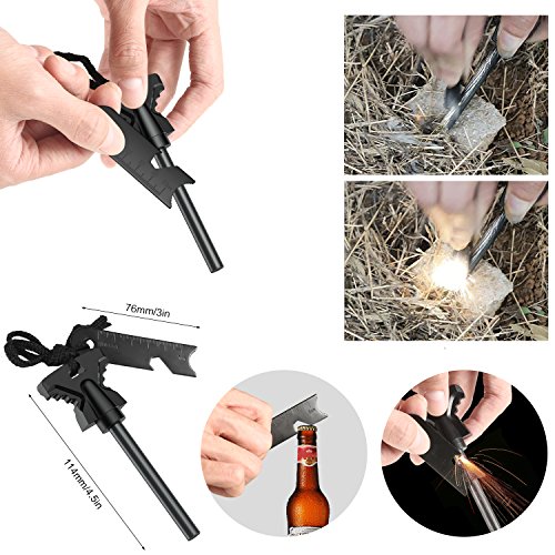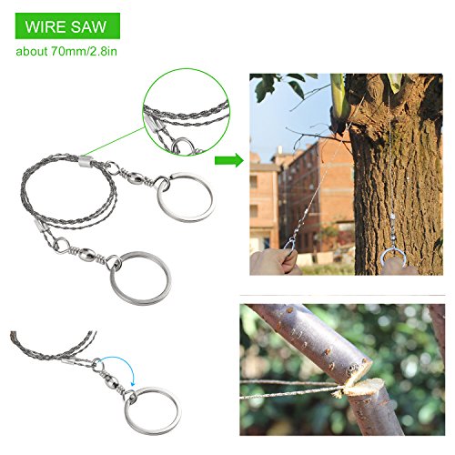- Whistle is loud and has a key ring on one end. Compass is compact, flexible and high sensitivity. Wire saw has saw blades sharp and smooth, do not hurt hand and can cut stuff and pretty quickly. Fire starter is easy to use, simply draw the strike rod down the block to create sparks to light your kindling.