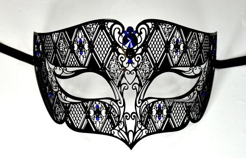 -. Title : Black Men Plated Laser Cut Venetian Masquerade Mask with Blue Rhinestones Event Party Ball Mardi Gars