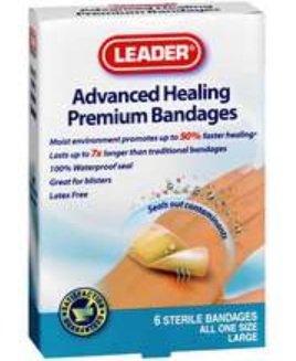 -. Title : Leader Adhesive Bandages Advanced Healing Large One Size 6 ct - Compare to Johnson & Johnson