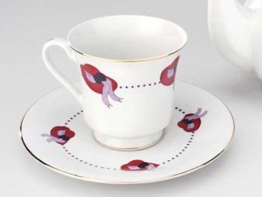 -. Brand : Darcie -. Feature : Listing for 1 cup & matching saucer as shown in photo / Decorated with Red Hats with purple bows for the Red Hat Society. / Great for gift giving / The cup measures 3 1/4" tall and 3 1/2" across the rim. The saucer measures 6" across. -. Label : Darcie -. Manufacturer : Darcie -. PackageQuantity : 6 -. ProductGroup : Kitchen -. ProductTypeName : KITCHEN -. Publisher : Darcie -. Studio : Darcie -. Title : Darice Red Hat Society Porcelain Cup and Saucer Gold Trim